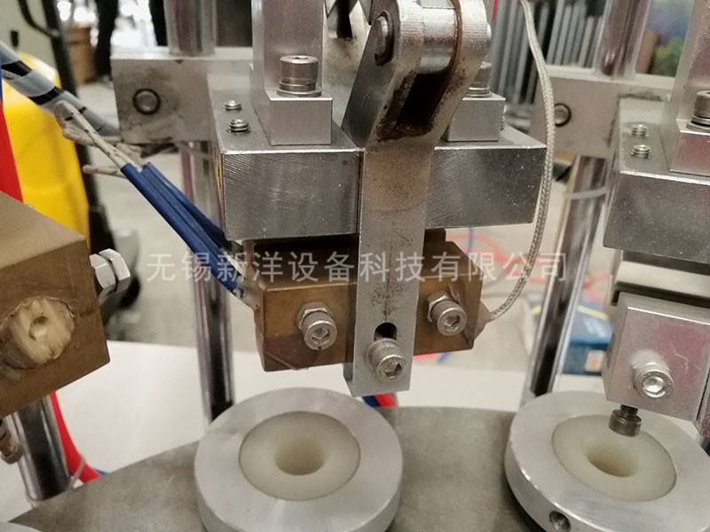 2、軟管試封,因軟管規(guī)格不同,使用不同模具加以配套,安裝完整模具座后,要調(diào)整高度,使管口達(dá)到封尾高度。開啟加熱開關(guān),設(shè)定內(nèi)加熱和外加熱兩溫度,通電以后電流表有指示,溫度應(yīng)逐步迭加,達(dá)到理想的封口溫度。(通常情況內(nèi)加熱設(shè)定250度,外加熱設(shè)定210度),等待溫度上升到設(shè)定值后即可灌裝。