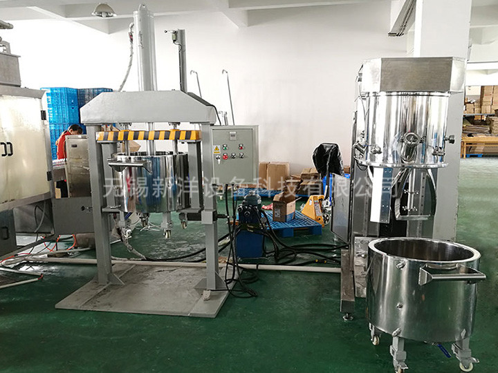 真空行星攪拌機的特點為:主機采用行星齒輪減速機設計,低噪音,機械效率高,可節(jié)省動力使用及減少設備占用空間。該機器適用于化工、輕工、食品、電池、制藥、建材、農藥等行業(yè)所需的多組份固-固相、固-液相、液-液相物料的混合、反應、分散、溶解、調質等工藝,如油墨、顏料、粘膠劑、密封膠、封裝膠軟膏、糊狀物料、潤滑脂、油漆、膏狀化妝品、添加物等多種高粘稠物的制備。使用粘度范圍10,000~1,000,000CP左右。攪拌器的形式根據物料要求可為多層漿葉式、框式、蝴蝶式、外輪式等。和普通攪拌機相比,它有如下優(yōu)缺點: